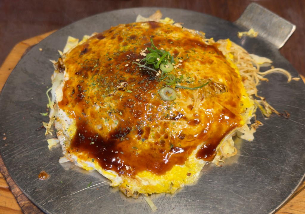 I went for okonomiyaki for lunch today, for the first time in several months. Now, of course, this being Hiroshima, okonomiyaki means Hiroshima okonomiyaki. (Hiroshima people can get quite irate if you say ‘Hiroshima-style okonomiyaki’, so I won’t, but that’s what it was.) It’s very different to Kansai okonomiyaki. This being Hiroshima, I wouldn’t dare say anything other than that I prefer the Hiroshima version to the Kansai version, but actually, that happens to be the truth.